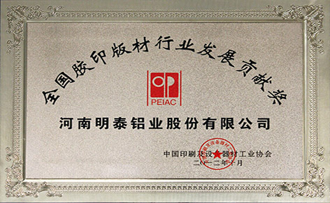 CTP版基銷量全國,占據80%國內市場 從2005年至今,公司PS版基/CTP版基銷量全國,在高端市場的占有率也已達80%以上。在2012的全國印刷行業協會上,河南明泰鋁業獲得了發展貢獻獎。 |